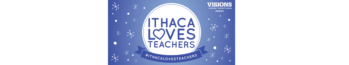 Visions Federal Credit Union presents Ithaca Loves Teachers, produced by Visit Ithaca, Downtown Ithaca Alliance & Tompkins Chamber.